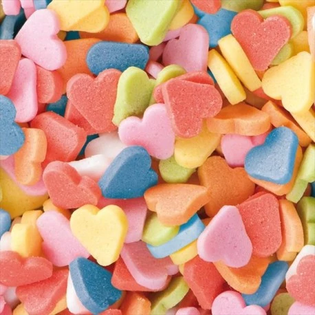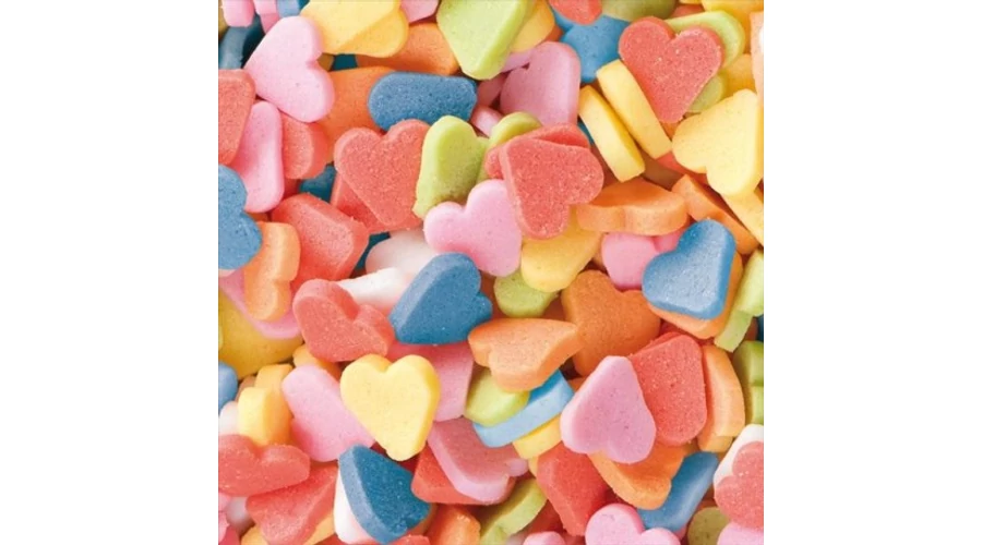 Apró confetti szívecskék, többféle színben, torták, sütemények tetejére ajánljuk díszítésként.