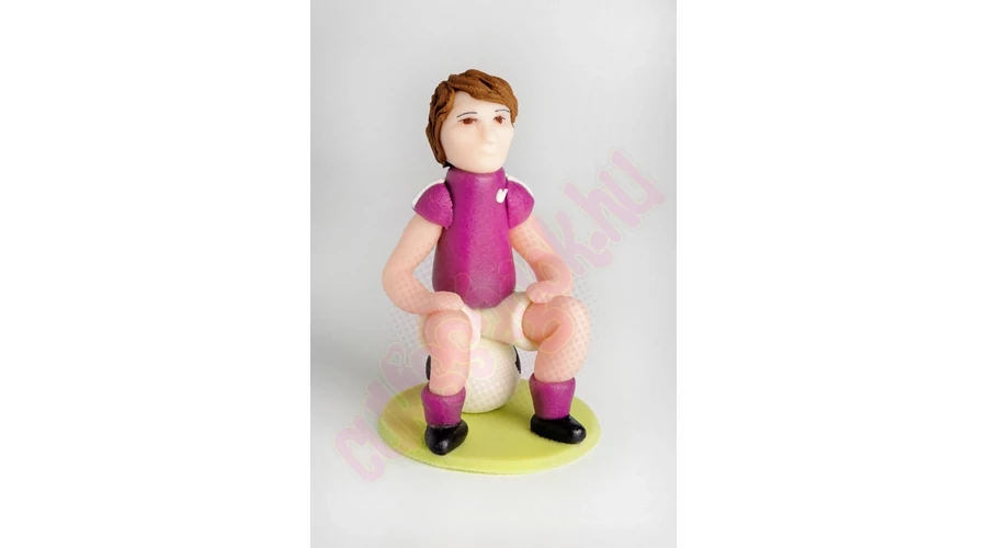 Lila mezes focistát ábrázoló, kézzel készített marcipán figura, darabonként műanyag hengerbe csomagolva. Alkalmi torták, sütemények díszítésére, vagy önállóan ajándékként felhasználható. Súlya: ~50 gramm.