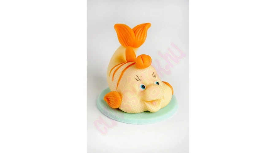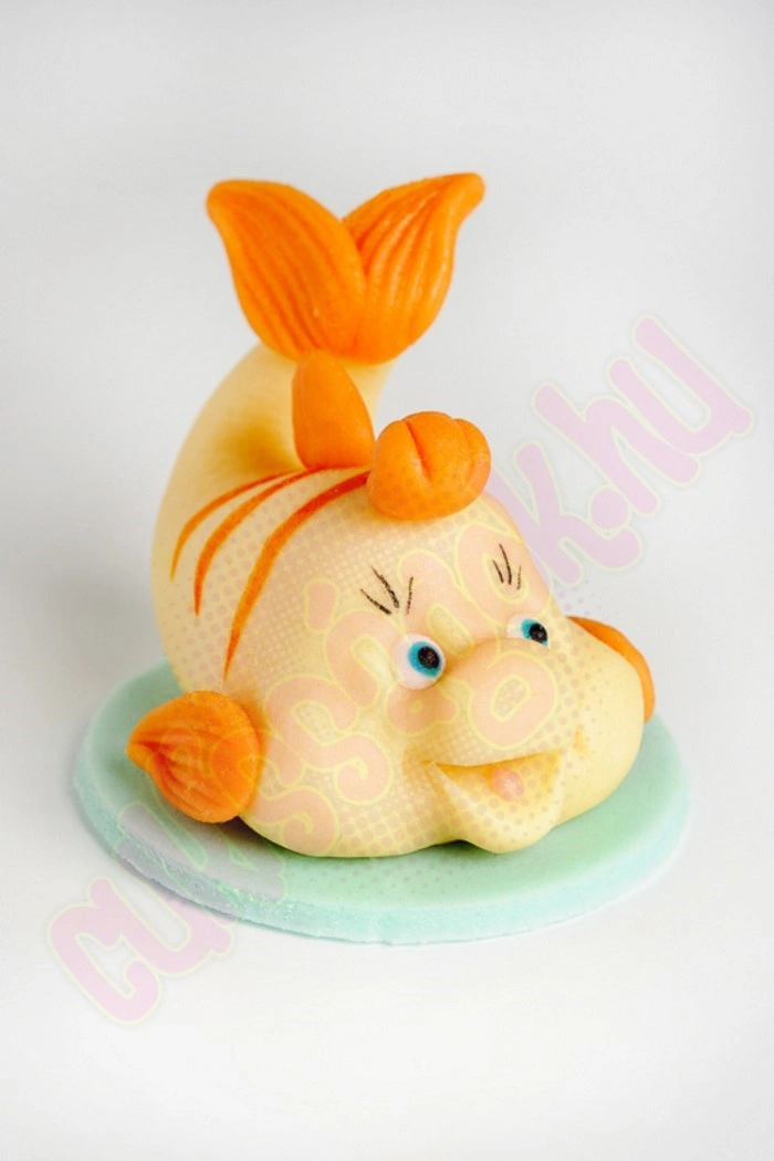 Narancssárga mesehalat ábrázoló, kézzel készített marcipán figura, darabonként műanyag hengerbe csomagolva. Alkalmi torták, sütemények díszítésére, vagy önállóan ajándékként felhasználható. Súlya: ~50 gramm.